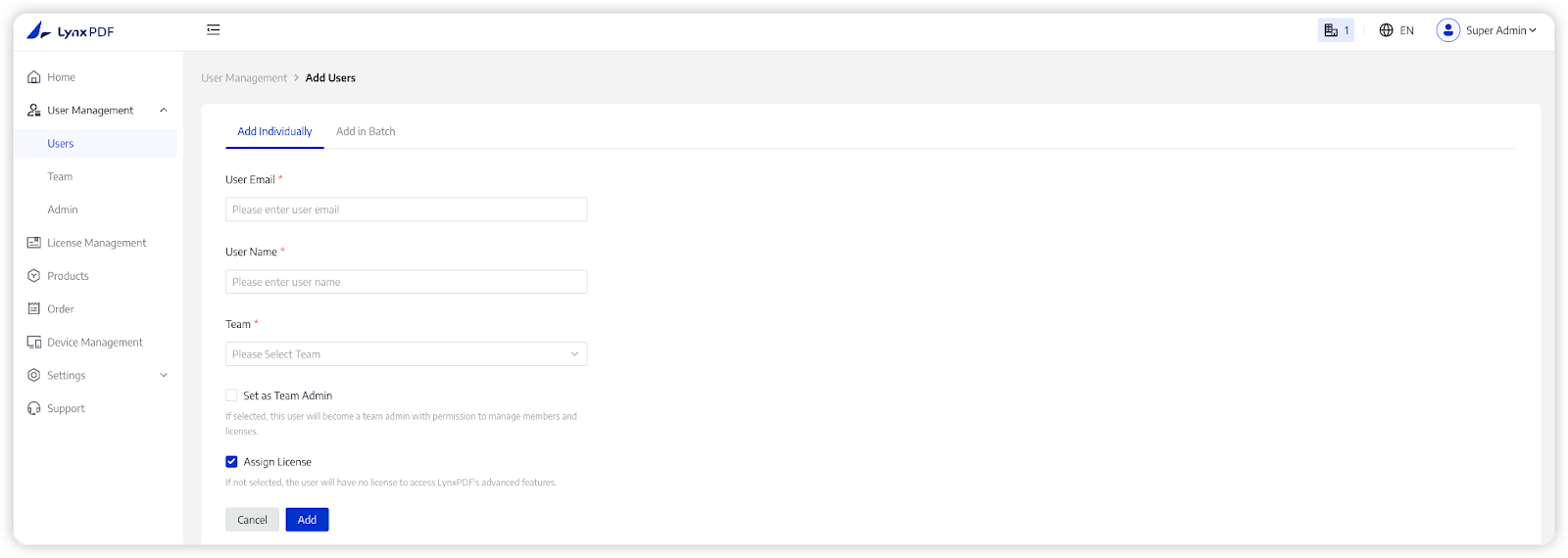 - Assign License: give the member access to LynxPDF’s full features.